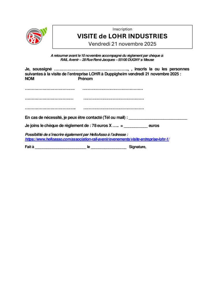 Bordereau inscription visite LOHR